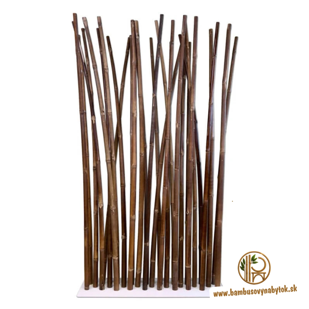 Oddeľovač miestnosti Tali z bambusových tyčí so šírkou 96,5 cm a výškou 200 cm obsahuje 29 bambusových tyčí Tali s priemerom približne 35 mm. Biela základná platňa má rozmery 29,5 cm x 96,5 cm, je vyrobená z ocele a je práškovo lakované. Naše oddeľovače miestnosti z bambusu Tali sú špeciálne navrhnuté tak, aby sa zmestili do každého interiéru. Ak sa snažíte predeliť veľkú miestnosť, potom môžete ľahko umiestniť vedľa seba niekoľko oddeľovačov miestnosti z bambusu.